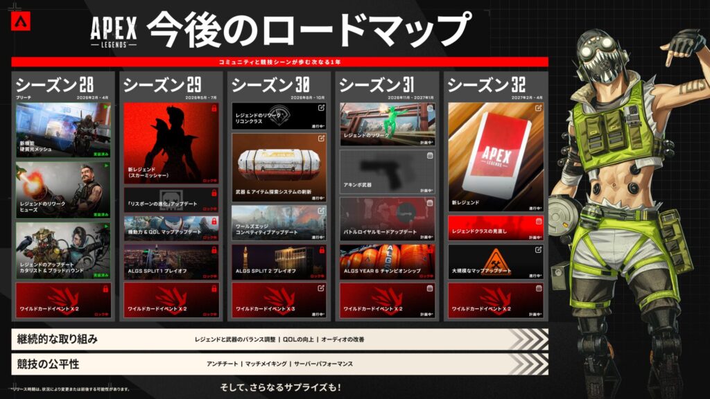 今回のロードマップから見えるのは、Apex Legendsが今後も競技性とプレイヤー体験を中心に進化していくという明確な方向性です。