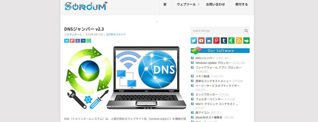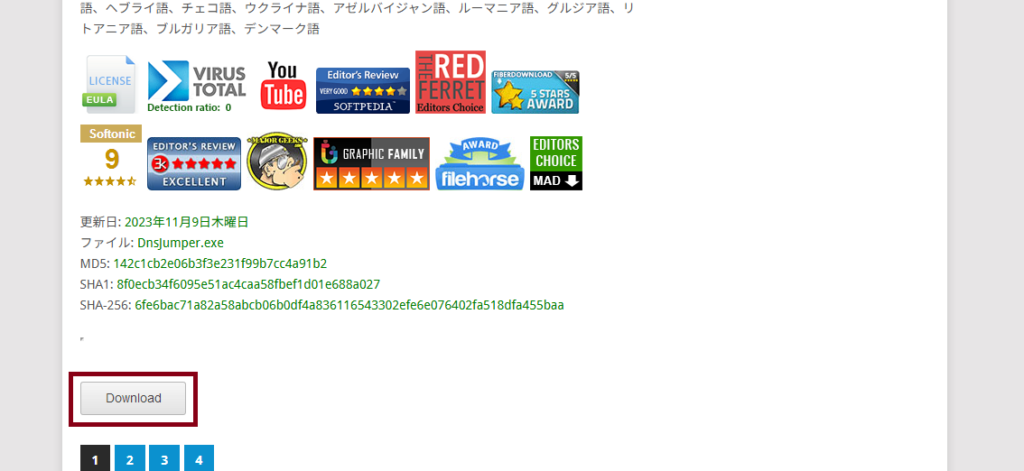DNS Jumper」にアクセスし、サイト下部の「Download」から、ツール(DNS Jumper)をダウンロードします。