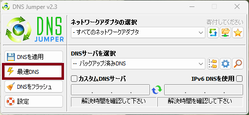 DNS Jumperと呼ばれるツールを使用して、ドメイン名(URLなど)をIPアドレスに変換するDNSサーバー(IPv4)を、応答速度の速いものに変更します。