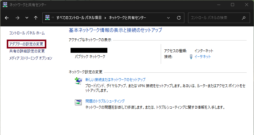 アダプターの設定の変更」を選択。