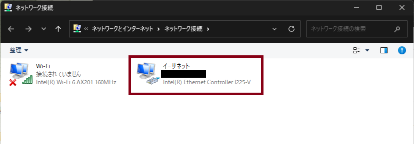イーサネット」を左クリック。