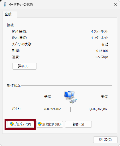 イーサネットのプロパティ設定