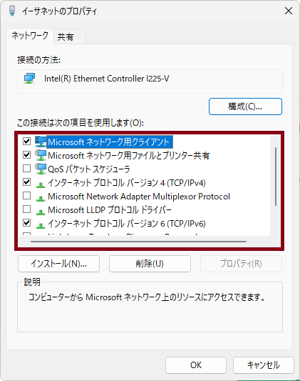 Microsoft ネットワーク用ファイルとプリンター共有